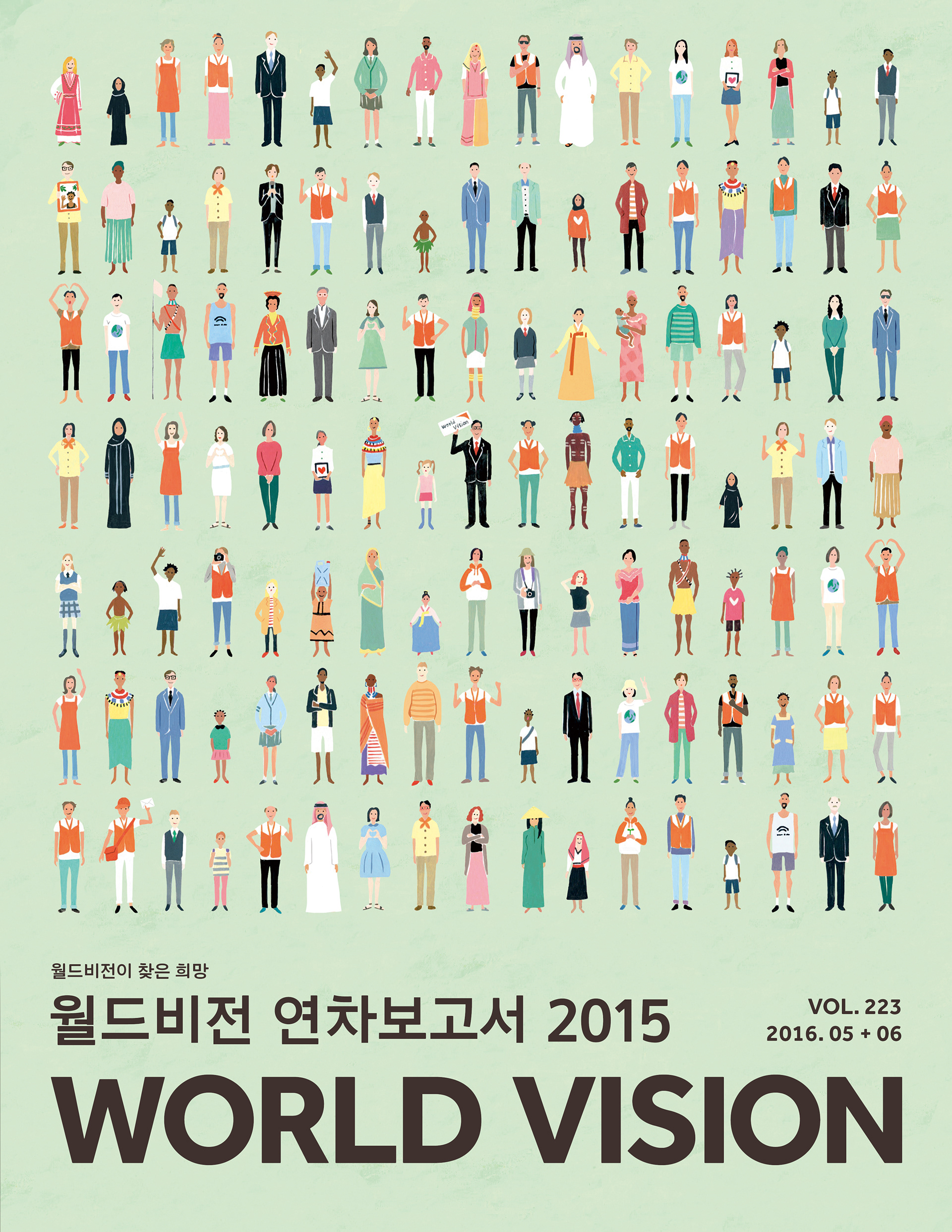 세계 각국의 다양한 사람들과 월드비전을 대표로 하는 컬러를 사용하여 조화를 이루도록 작업하였습니다.