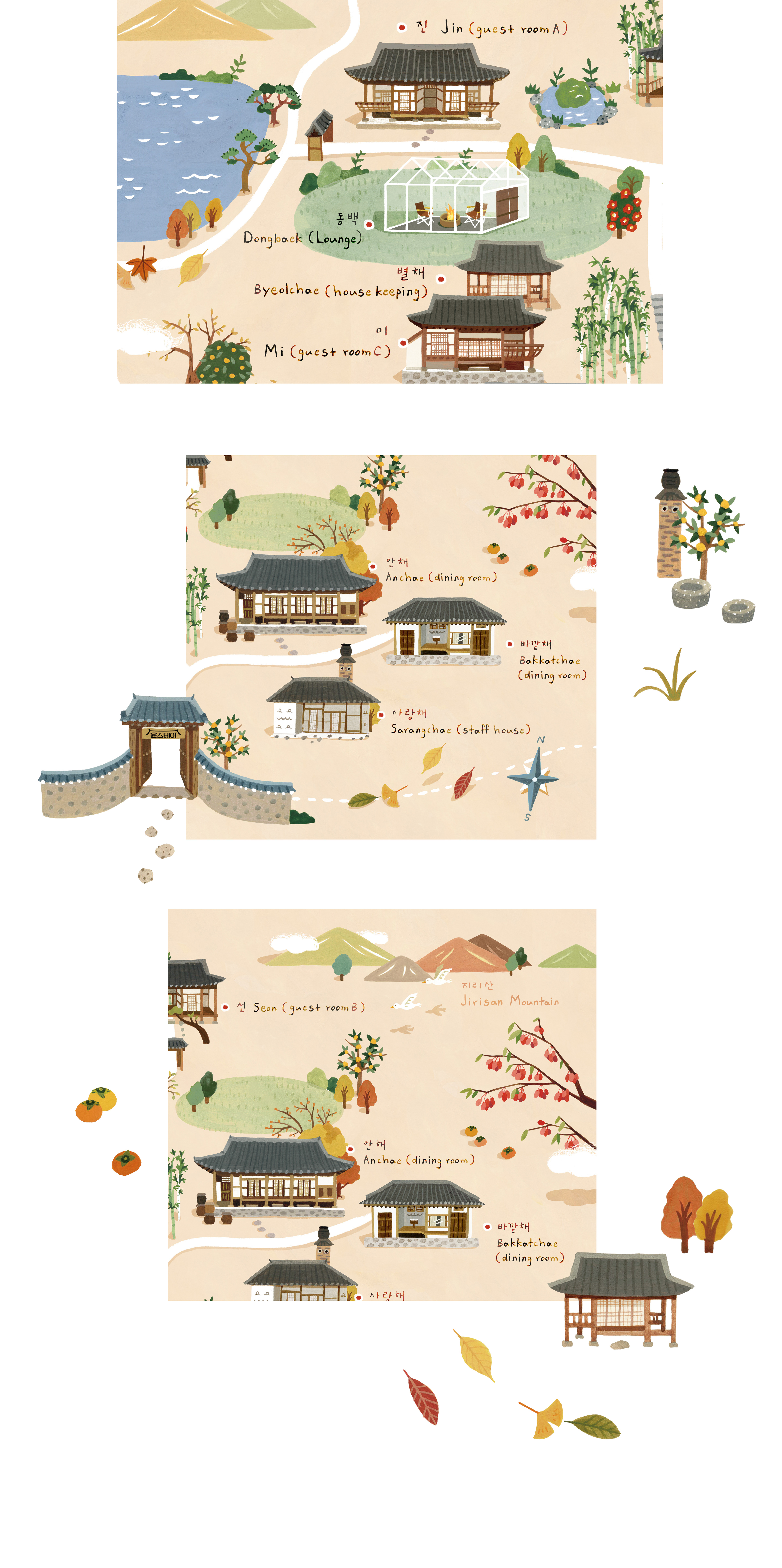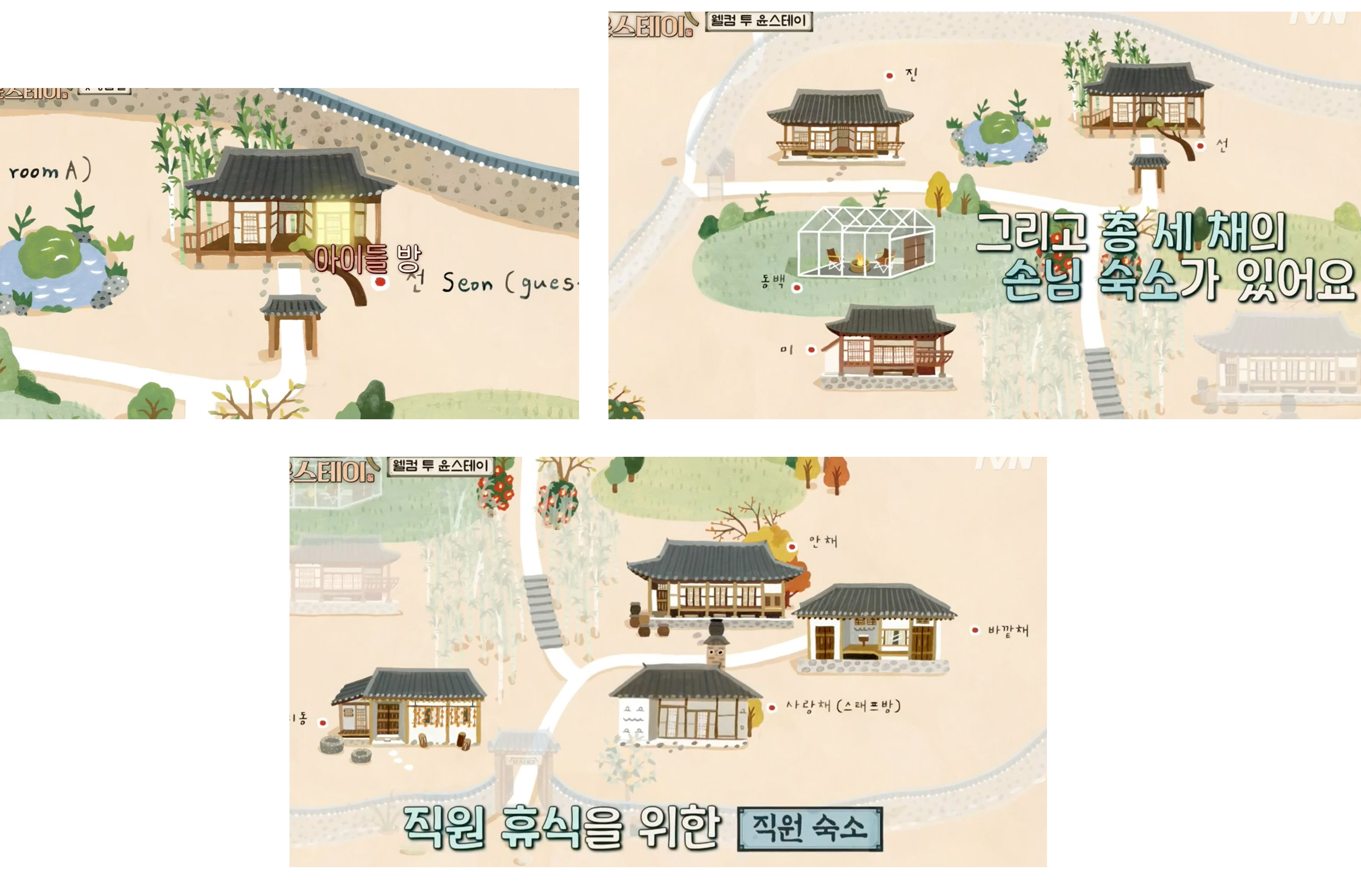방송 속 윤스테이 곳곳을 일러스트로 소개하였습니다.