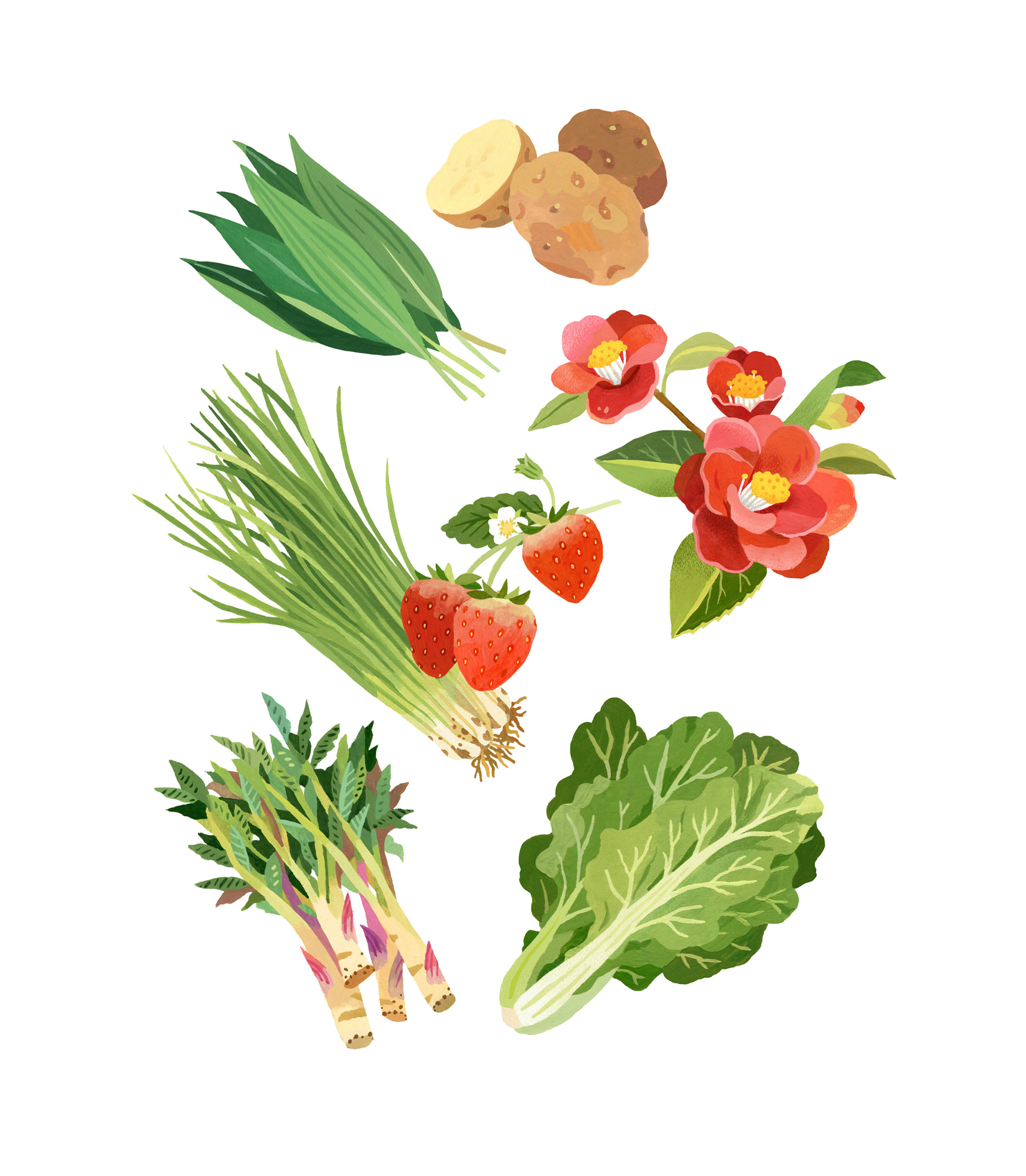 tvN '언니네 산지 직송'의 지역 지도, 특산물, 출연진 캐릭터 일러스트를 작업하였습니다.