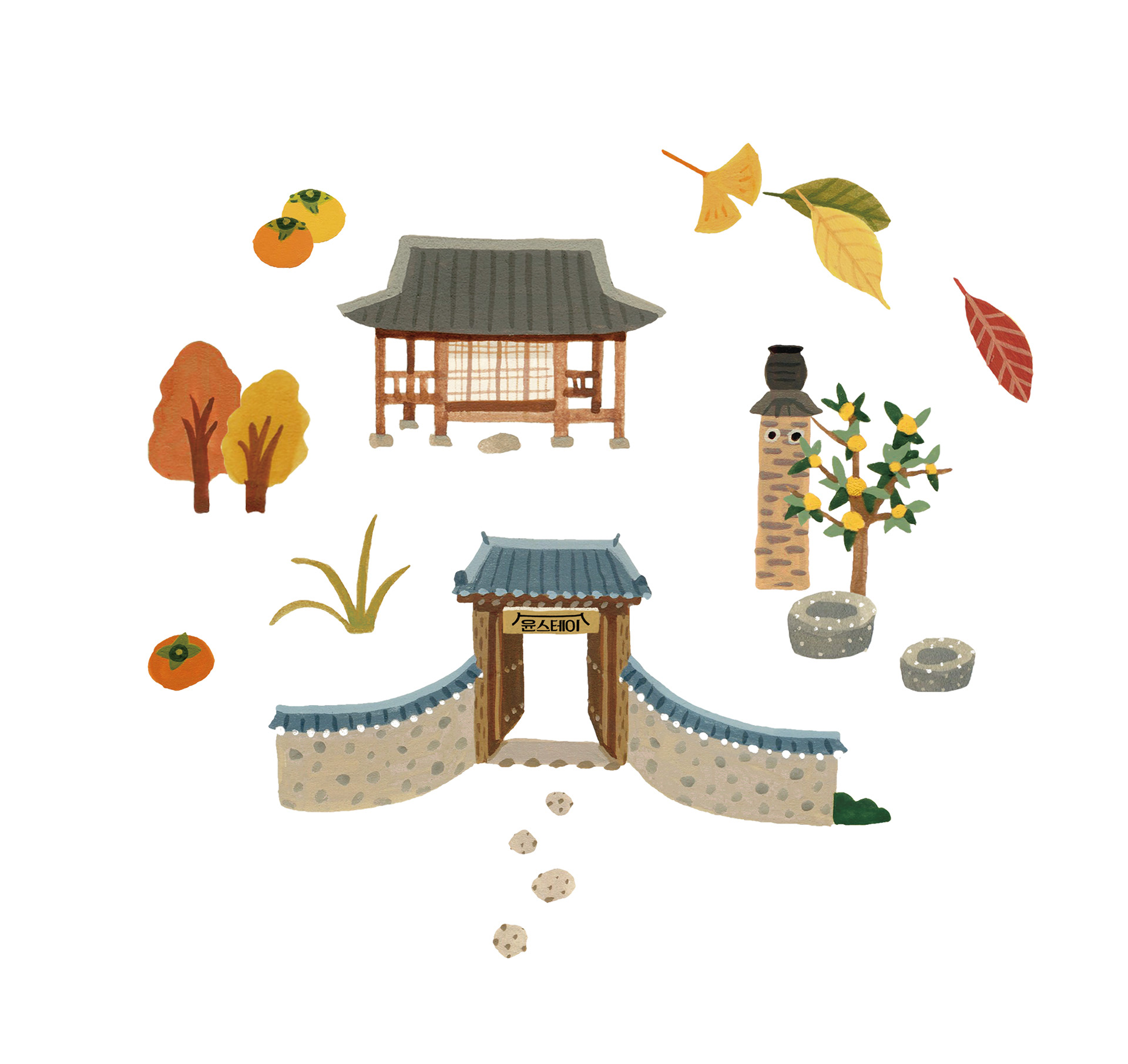 방송 속 윤스테이 곳곳을 일러스트로 소개하였습니다.